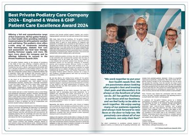 We were ‘over the moon’ at being awarded the Best England & Wales Private Podiatry Care Company 2024 and GHP Patient Care Excellence Award 2024.
